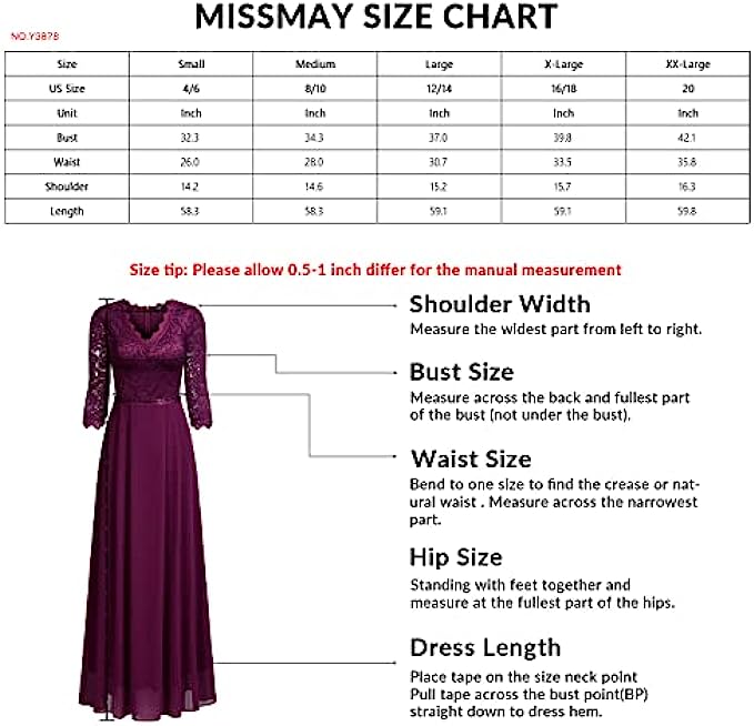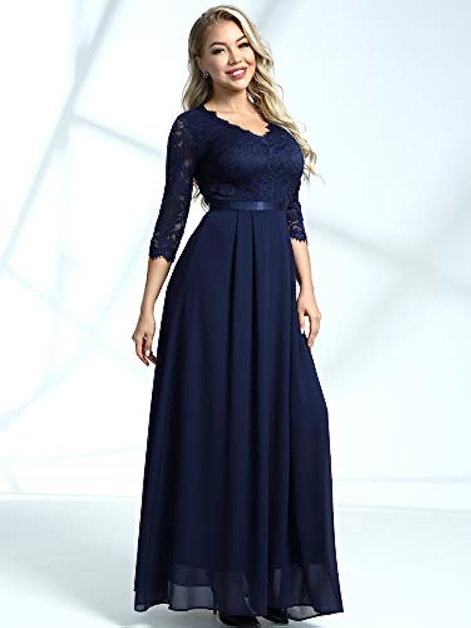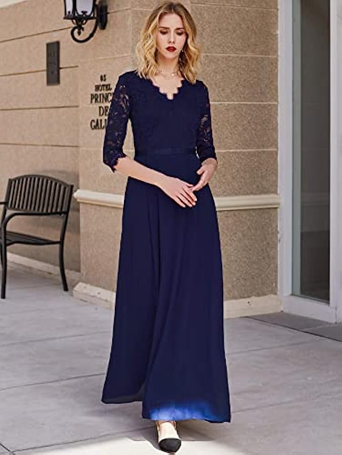 MISSMAY Women’s Formal Floral Lace 2/3 Sleeves Long Evening Party Maxi Dress